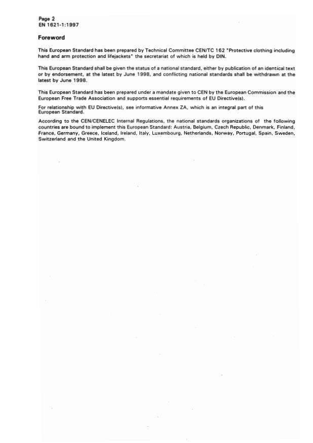 EN 1621-1:1997 is associated with the following European legislation: EU Directives/Regulations: 89/686/EEC; Standardization Mandates: M/031. When a standard is cited in the Official Journal of the European Union, products manufactured in conformity with it benefit from a presumption of conformity with the essential requirements of the corresponding EU directive or regulation.