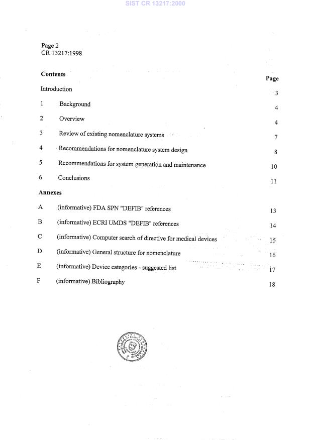 CR 13217:1998 is a standard published by the European Committee for Standardization (CEN). Its full title is "Nomenclature system for medical devices for the purpose of regulatory data exchange - Rationale". This standard covers: No scope available