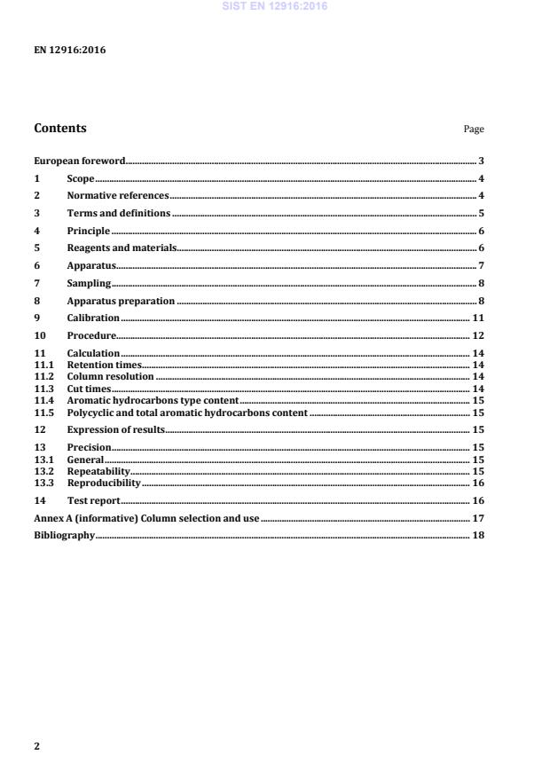 Ta evropski standard opredeljuje preskusno metodo za določanje vsebnosti monoaromatskih, diaromatskih in tri+-aromatskih ogljikovodikov v dizelskih gorivih, ki lahko vsebujejo do 30-odstotne (V/V) metilne estre maščobnih kislin (FAME) in naftne destilate z območjem vrelišča od 150 °C do 400 °C. Vsebnost policikličnih aromatskih ogljikovodikov je izračunana na podlagi vsote diaromatskih in tri+-aromatskih ogljikovodikov, skupna vsebnost aromatskih spojin pa je izračunana na podlagi vsote posameznih