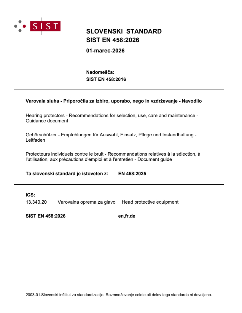 Ta slovenski standard je istoveten z: EN 458:2025
