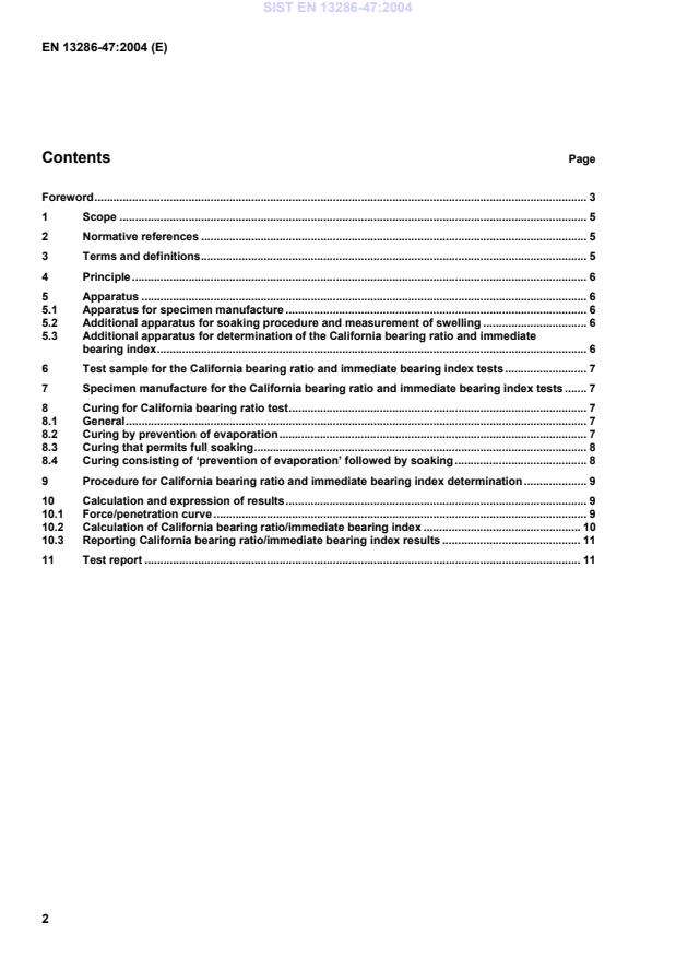 The standard specifies the method for the laboratory determination of the California bearing ratio (CBR) and immediate bearing index (IBI). The standard describes the principle of the tests, the apparatus required, the preparation of the test specimens, the curing of the specimens if required, the testing of the specimens, and the expression and reporting of the results. The preparation of the test specimens for CBR and IBI determination is by dynamic compaction using Proctor or modified Proctor compactive effort as specified in prEN 00227411.