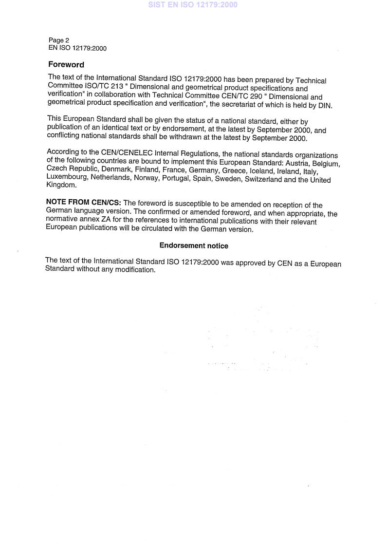 EN ISO 12179:2000 is a standard published by the European Committee for Standardization (CEN). Its full title is "Geometrical Product Specifications (GPS) - Surface texture: Profile method - Calibration of contact (stylus) instruments (ISO 12179:2000)". This standard covers: La présente Norme internationale s'applique à l'étalonnage des caractéristiques métrologiques des instruments à contact (palpeur) destinés au mesurage de l'état de surface par la méthode du profil comme défini dans l'ISO 3274. L'étalonnage est à effectuer avec des étalons de mesure.L'annexe B s'applique à l'étalonnage des caractéristiques métrologiques d'instruments à contact (palpeur) simplifiés qui ne sont pas en conformité avec l'ISO 3274.
