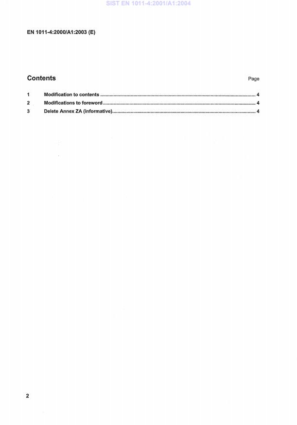 Ta slovenski standard je istoveten z: EN 1011-4:2000/A1:2003
