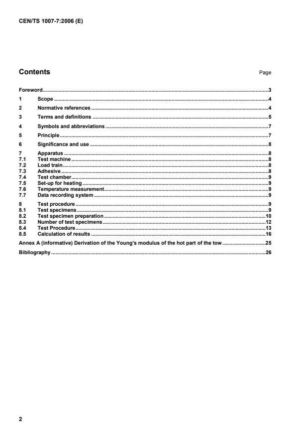 CEN/TS 1007-7:2006 is a technical specification published by the European Committee for Standardization (CEN). Its full title is "Advanced technical ceramics - Ceramic composites. Methods of test for reinforcements - Part 7: Determination of the distribution of tensile strength and of tensile strain to failure of filaments within a multifilament tow at high temperature". This standard covers: This Technical Specification specifies the conditions, apparatus and procedure for determining the distribution of tensile strength and tensile strain to failure of ceramic filaments in multifilament tows at high temperature in air, vacuum or a controlled inert atmosphere. This Technical Specification applies to tows of continuous ceramic filaments, which are assumed to act freely and independently under loading and behave linearly elastic up to failure. Two methods are proposed depending on the temperature of the ends of the tow: a) hot end method; NOTE 1 The application of the hot end method is restricted by ceramic glues with sufficient shear strengths at the test temperature. Current experience with this technique is limited to 1 300 °C, because of the maximum application temperature of ceramic glues. b) cold end method. NOTE 2 The cold-end method is limited to 1 700 °C in air and 2 000 °C in inert atmosphere because of the limits of furnaces. Both methods allow for a failure rate in the determination of distribution of tensile strain and tensile strength.