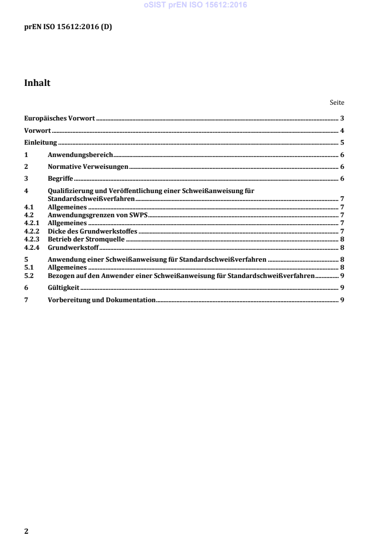 Dieses Dokument (prEN ISO 15612:2016) wurde vom Technischen Komitee ISO/TC 44 „Welding and allied