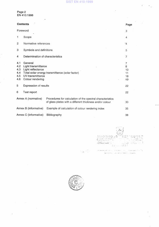 EN 410:1998 is a standard published by the European Committee for Standardization (CEN). Its full title is "Glass in building - Determination of luminous and solar characteristics of glazing". This standard covers: This European Standard specifies methods of determining the luminous and solar characteristics of glazing in buildings. These characteristic can serve as a basis for lighting, heating and cooling calculations of rooms and permit comparison between different types of glazing. This European Standard applies both to conventional glazing and to absorbing or reflecting solar-control glazing, used as vertical or horizontal glazed apertures. The appropriate formulae for single, double and triple glazing are given.