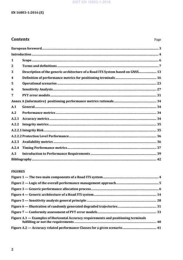 FIGURES Figure 1 — The two main components of a Road ITS system . 4 Figure 2 — Logic of the overall performance management approach . 5 Figure 3 — Generic performance allocation process . 6 Figure 4 — Generic architecture of a Road ITS system . 14 Figure 5 — Sensitivity analysis general principle . 28 Figure 6 — Illustration of randomly generated degraded trajectories . 31 Figure 7 — Conformity assessment of PVT error models . 33 Figure A.1 — Examples of Horizontal Accuracy requirements and positioning terminals fulfilling or not the requirements . 40 Figure A.2 — Accuracy related performance Classes for a given scenario . 41 SIST EN 16803-1:2016