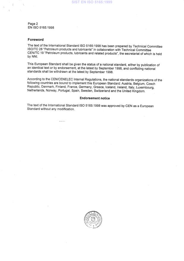EN ISO 5165:1998 is classified under the following ICS (International Classification for Standards) categories: 75.160.20 - Liquid fuels. The ICS classification helps identify the subject area and facilitates finding related standards.