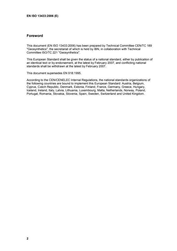 EN ISO 13433:2006 is classified under the following ICS (International Classification for Standards) categories: 59.080.70 - Geotextiles. The ICS classification helps identify the subject area and facilitates finding related standards.