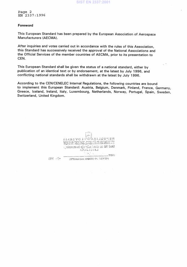 EN 2337:1996 has the following relationships with other standards: It is inter standard links to EN 2337:2006. Understanding these relationships helps ensure you are using the most current and applicable version of the standard.