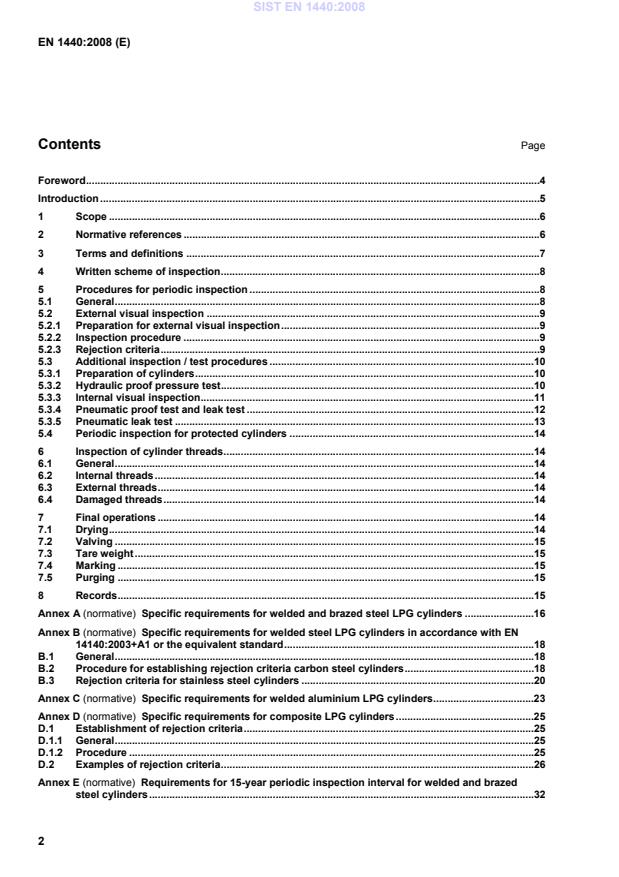 Annex D; h) integrity of all permanent attachments; i) integrity of the mandatory permanent marking. 5.2.3 Rejection criteria Defects and rejection limits are described in: Annex A for specific requirements for welded and brazed steel LPG cylinders; SIST EN 1440:2008