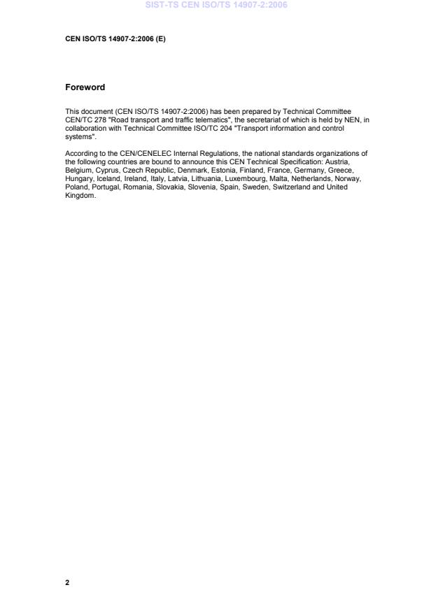 CEN ISO/TS 14907-2:2006 is classified under the following ICS (International Classification for Standards) categories: 35.240.60 - IT applications in transport; 43.040.15 - Car informatics. On board computer systems. The ICS classification helps identify the subject area and facilitates finding related standards.