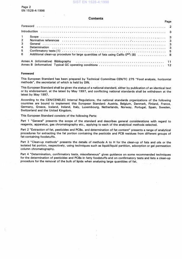 Keywords: EN 1528-4, fatty food, pesticides, PCBs, determination, confirmatory tests, clean-up procedure, food analysis, CEN, SIST EN 1528-4.