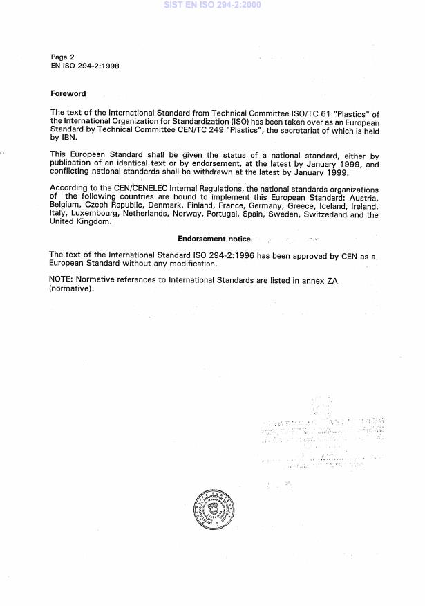 Ta slovenski standard je istoveten z: EN ISO 294-2:1998