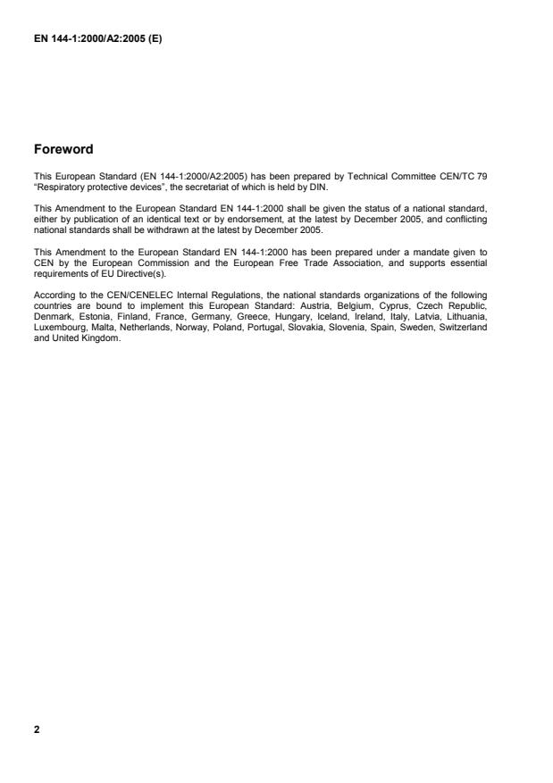 This amendment A2 modifies the European Standard EN 144-1:2000; it was approved by CEN on 26 May 2005.