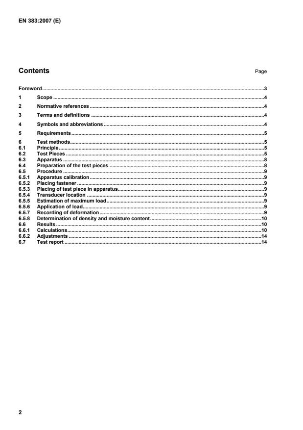 Keywords: EN 383:2007, embedment strength, foundation values, dowel type fasteners, timber structures, test methods, load–deformation, foundation modulus, specimen conditioning.