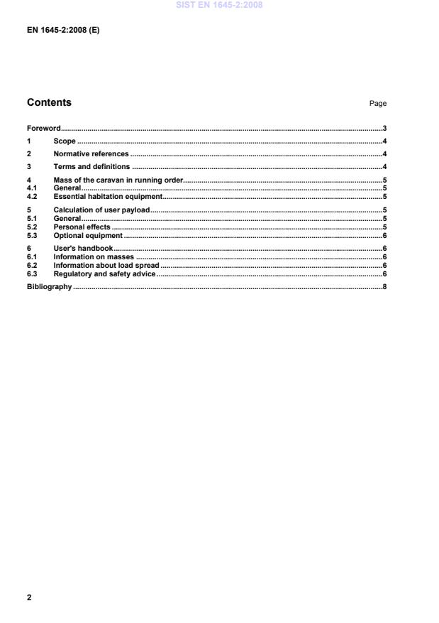 EN 1645-2:2008 is a standard published by the European Committee for Standardization (CEN). Its full title is "Leisure accommodation vehicles - Caravans - Part 2: User payload". This standard covers: This European standard specifies the calculation method of user payloads allowed, when designing caravans. It also sets out the information relating to user payload to be included in the user's handbook. It applies to all categories of caravan as defined in EN 13878.