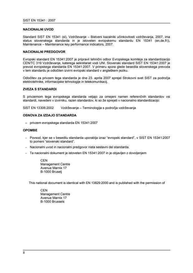 2003-01.Slovenski inštitut za standardizacijo. Razmnoževanje celote ali delov tega standarda ni dovoljeno.Maintenance - Maintenance Key Performance IndicatorsMaintenance - Indicateurs-clés de performances en matiere de maintenanceInstandhaltung - Wesentliche Leistungskennzahlen für die InstandhaltungTa slovenski standard je istoveten z:EN 15341:2007SIST EN 15341:2007en;fr;de03.100.99Drugi standardi v zvezi z organizacijo in vodenjem podjetjaOther standards related to company organization and managementICS:SLOVENSKI