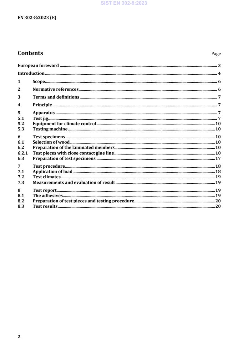 Keywords: EN 302-8:2023, adhesives for load-bearing timber structures, static load test, compression shear, bond line, climate conditions, adhesive classification.