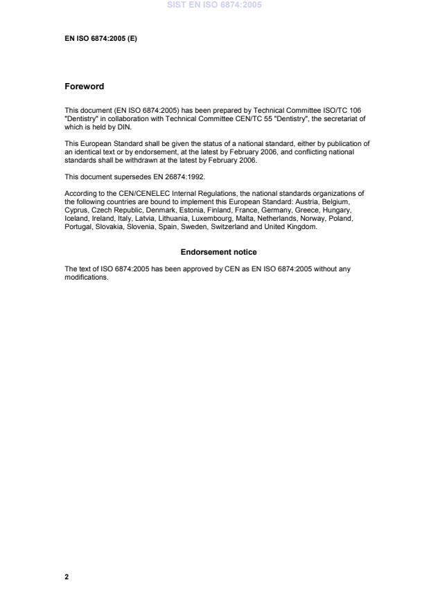 ISO 6874 was prepared by Technical Committee ISO/TC 106, Dentistry, Subcommittee SC 1, Filling and