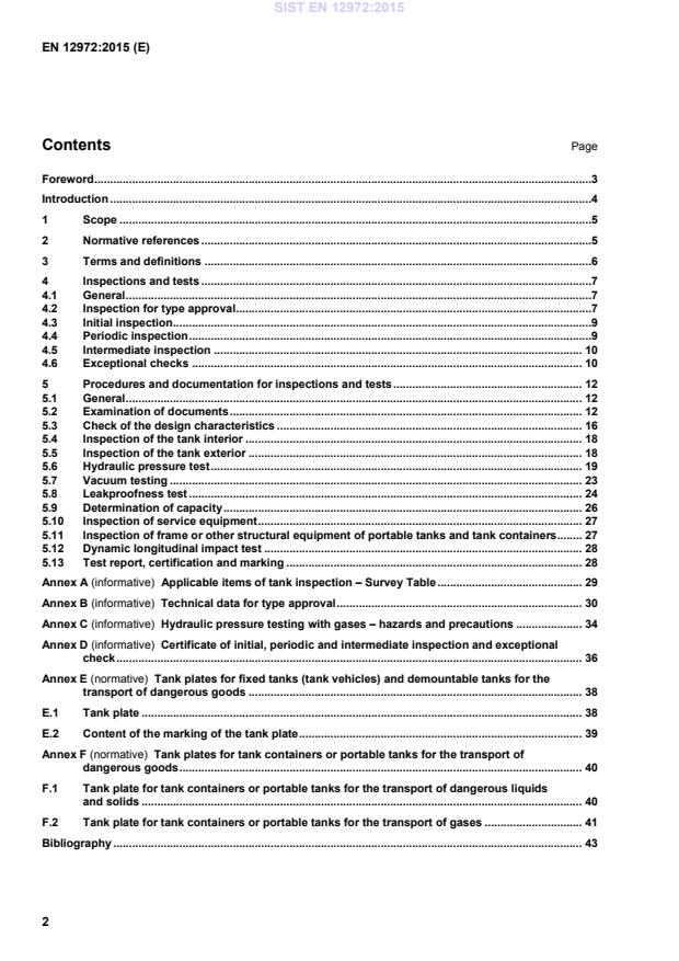 Ta evropski standard določa preskušanje, pregled in označevanje za homologacijo, prvi pregled, redne, vmesne in izredne preglede kovinskih (lupine in opreme), pritrjenih cistern (vozila s cisternami), snemljivih cistern, cistern železniških vagonov, premičnih cistern in cistern za prevoz nevarnega blaga. Ta evropski standard se ne uporablja za posode, kot so plinske jeklenke, akumulatorska vozila in akumulatorski vagoni, ki vsebujejo valje, cevi, tlačne valje, sklope jeklenk in plinske vsebnike iz več elementov (MEGC), ne glede na to, ali so elementi posode oz. rezervoarji in skladiščni rezervoarji srednje velikosti (IBC).
