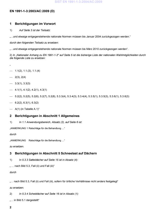 Eurocode 1 - Einwirkungen auf Tragwerke -Teil 1-3: Allgemeine Einwirkungen, Schneelasten This corrigendum becomes effective on 11 March 2009 for incorporation in the three official language versions of the EN.