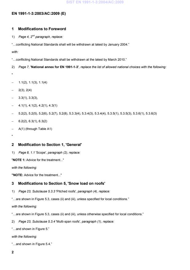 EN 1991-1-3:2003/AC:2009 is a corrigendum published by the European Committee for Standardization (CEN). Its full title is "Eurocode 1 - Actions on structures - Part 1-3: General actions - Snow loads". This standard covers: TC - Editorial modifications in the English mother version. 2013: Originator of XML version: first setup pilot of CCMC in 2012