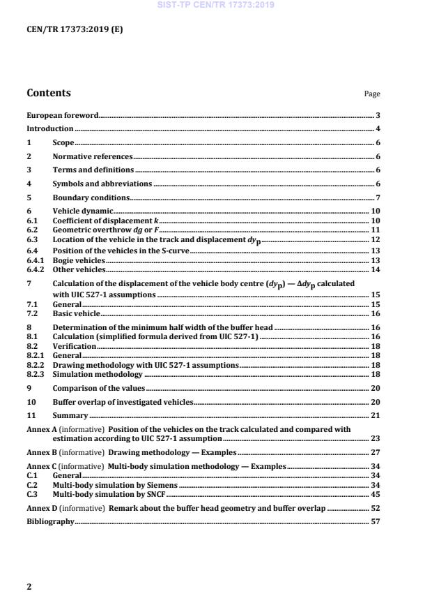 CEN/TR 17373:2019 is a technical report published by the European Committee for Standardization (CEN). Its full title is "Railway applications - Railway rolling stock - Investigation of vehicles position on the reverse curve tracks during running and calculation of buffer overlap". This standard covers: The purpose of this document is to analyse the conducted investigation and evaluation of lateral displacement and buffer overlap between each two specified vehicles of different train sets for defined running cases in curves. For this purpose, the types of vehicles defining the train sets and different operating conditions are specified. Position of the vehicles on the track at the moment of maximum lateral displacement (minimum buffer overlap) is recorded during the calculation. The worst cases of lateral displacement and buffer overlap between two coupled vehicles as well as relation to formulae in EN 15551:2009 are analysed.