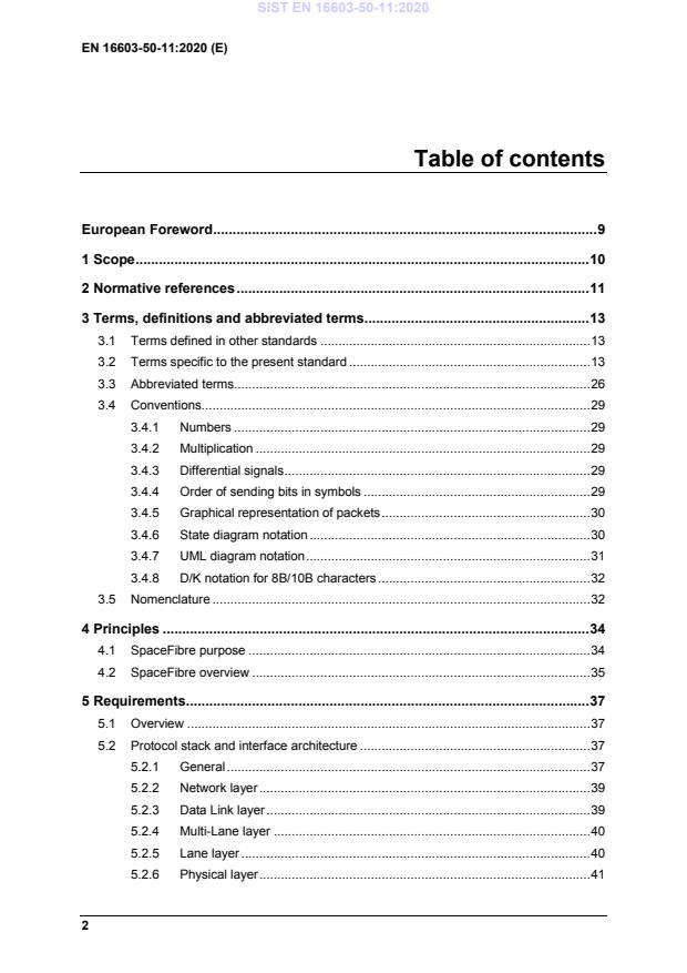 EN 16603-50-11:2020 is a standard published by the European Committee for Standardization (CEN). Its full title is "Space engineering - SpaceFibre - Very high-speed serial link". This standard covers: The scope of the SpaceFibre standard is the detailed specification a very high-speed serial link protocol stack reaching from link level Quality layer down to the Physical layer. The higher layers like packet, network and higher level protocols are the same as for SpaceWire and specified in the respective standards ECSS-E-ST-50-12C and ECSS-E-ST-50-51C to 53C.