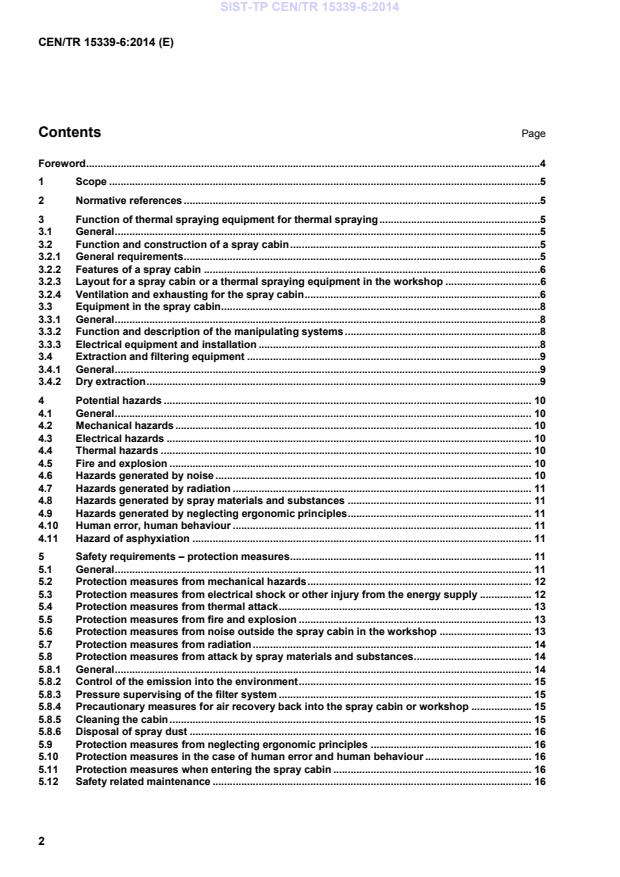 Keywords: CEN/TR 15339-6:2014, thermal spraying, spray booth safety, dust collection, exhaust system, filter, spray cabin ventilation, spray booth design, safety requirements.