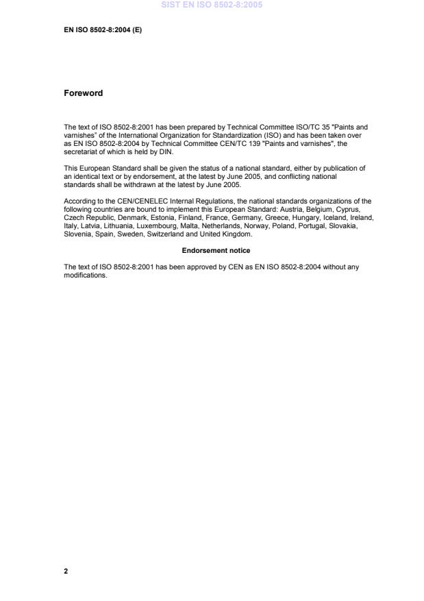 The text of ISO 8502-8:2001 has been prepared by Technical Committee ISO/TC 35 "Paints and