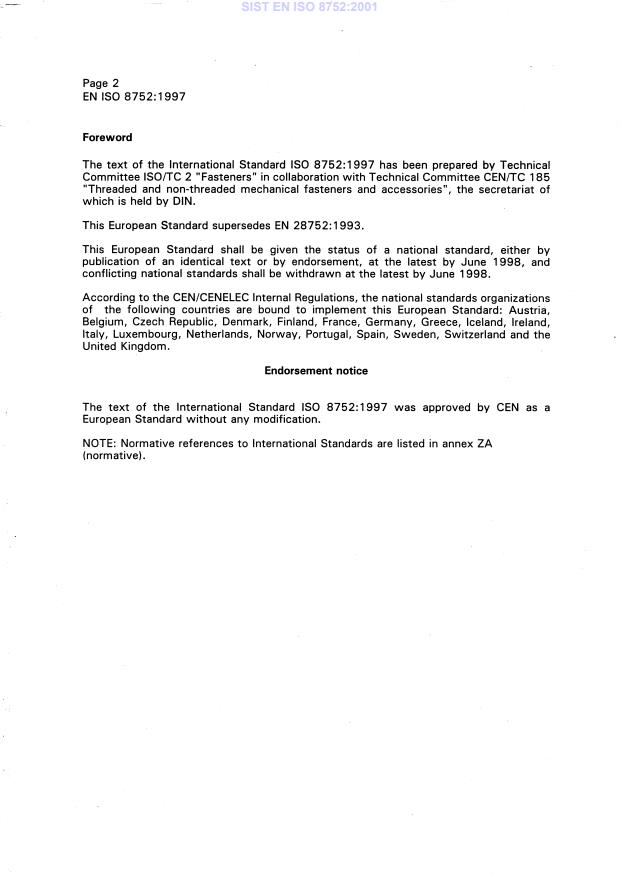 EN ISO 8752:1997 is classified under the following ICS (International Classification for Standards) categories: 21.060 - Fasteners. The ICS classification helps identify the subject area and facilitates finding related standards.