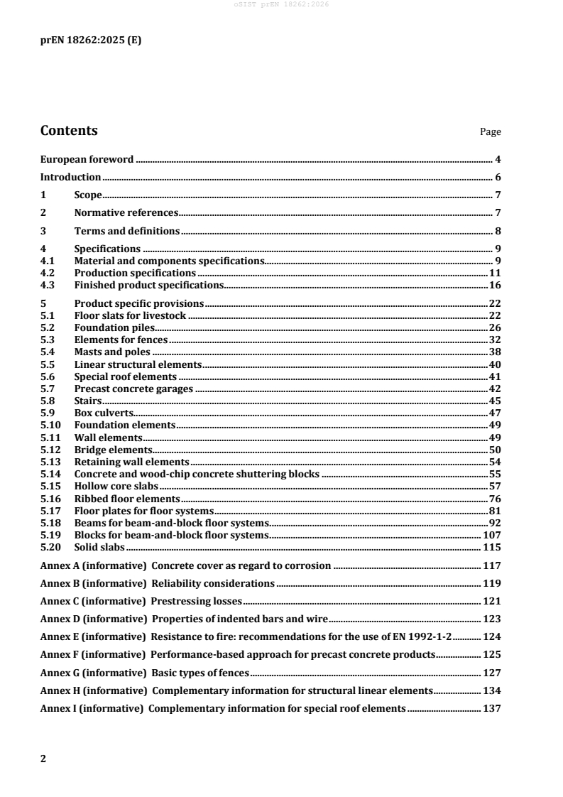 - Previous product-specific EN standards for hollow core slabs, foundation piles, fences, floor systems, stairs, retaining walls, and others, which are integrated and updated within prEN 18262.