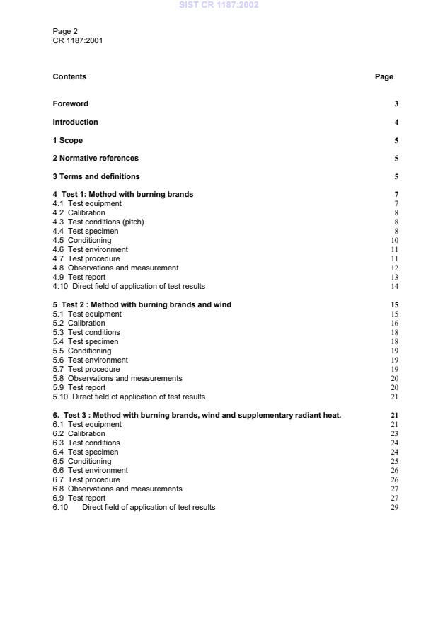 This European Standard specifies three methods for determining the performance of roofs to external fire exposure. The three methods assess the performance of roofs under the following conditions:test 1 - with burning brands test 2 - with burning brands and wind