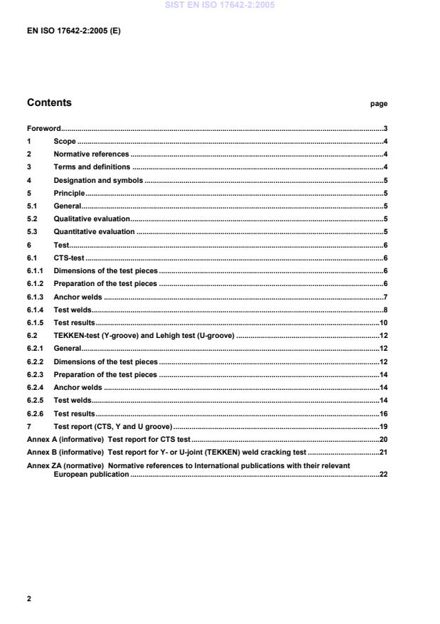 Keywords: EN ISO 17642-2:2005, cold cracking tests, self‑restraint tests, CTS test, Tekken Y‑groove, Lehigh U‑groove, weld cracking sensitivity, arc welding, C‑Mn steels, hydrogen determination.