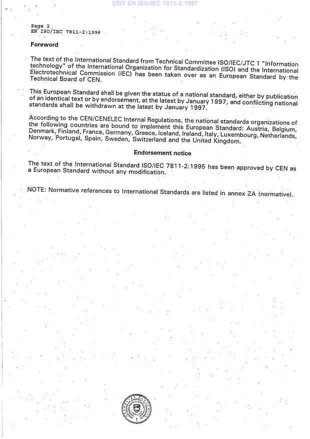 This page intentionally left blank SIST EN ISO/IEC 7811-2:1997