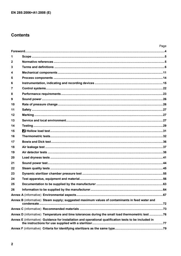 EN 285:2006+A1:2008 is a standard published by the European Committee for Standardization (CEN). Its full title is "Sterilization - Steam sterilizers - Large sterilizers". This standard covers: 1.1 This European Standard specifies requirements and the relevant tests for large steam sterilizers primarily used in health care for the sterilization of medical devices and their accessories contained in one or more sterilization modules. The test loads described in this European Standard are selected to represent the majority of loads (i.e. wrapped goods consisting of metal, rubber and porous materials) for the evaluation of general purpose steam sterilizer for medical devices. However, specific loads (e.g. heavy metal objects or long and/or narrow lumen) will require the use of other test loads. Large steam sterilizers can also be used during the commercial production of medical devices. 1.2 This European Standard is not applicable to steam sterilizers designed to process a size of load less than one sterilization module or having a chamber volume less than 60 l. 1.3 This European Standard does not describe a quality assurance system for the control of all stages of the manufacture of the sterilizer. NOTE Attention is drawn to the standards for quality management systems e.g. EN ISO 13485. 1.4 Planning and design of products applying to this European Standard should consider the environmental impact from the product during its life cycle. Environmental aspects are addressed in Annex A. NOTE Additional aspects of environmental impact are addressed in EN ISO 14971.