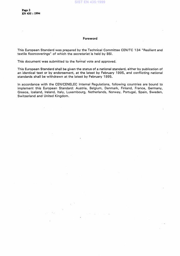 EN 435:1994 is a standard published by the European Committee for Standardization (CEN). Its full title is "Resilient floor coverings - Determination of flexibility". This standard covers: This European Standard was prepared by Technical Committee CEN/TC 134 'Resilient and textile floorcoverings', the Secretariat of which is held by BSI.
