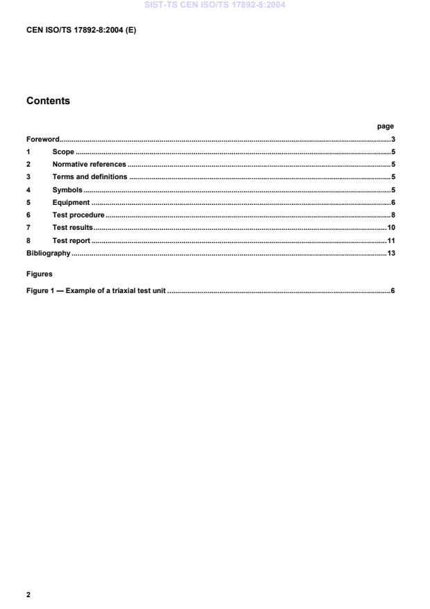 ISO/TS 17892-8:2004 specifies the test method for the determination of the compressive strength of a cylindrical, water-saturated specimen of undisturbed or remoulded cohesive soil when first subjected to an isotropic stress without allowing any drainage from the specimen, and thereafter sheared under undrained conditions within the scope of the geotechnical investigations according to prEN 1997-1 and -2. NOTE "Water-saturated" refers to the in-situ condition. The material tested need not necessarily be saturated at all stages during the laboratory testing.