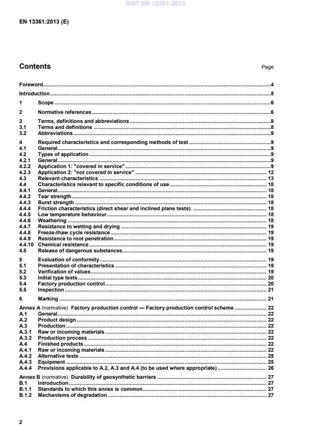 Durability of geosynthetic barriers . 27 B.1 Introduction . 27 B.1.1 Standards to which this annex is common . 27 B.1.2 Mechanisms of degradation . 27 SIST EN 13361:2013