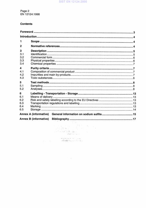 EN 12124:1998 is a standard published by the European Committee for Standardization (CEN). Its full title is "Chemicals used for treatment of water intended for human consumption - Sodium sulfite". This standard covers: This European Standard is applicable to sodium sulfite used for treatment of water intended for human consumption. It describes the characteristics of sodium sulfite and specifies the requirements and the corresponding test methods for sodium sulfite. It gives information on its use in water treatment.