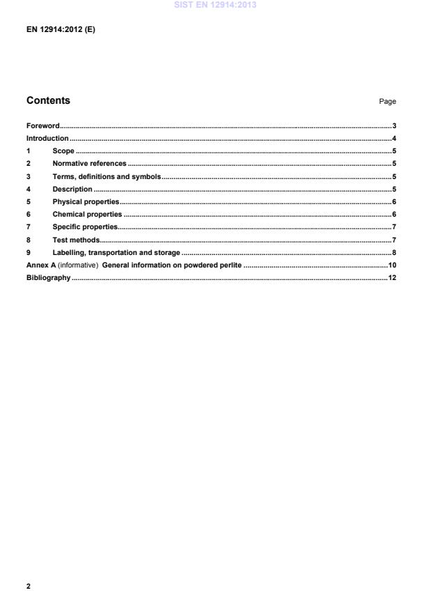 General information on powdered perlite . 10Bibliography . 12 SIST EN 12914:2013