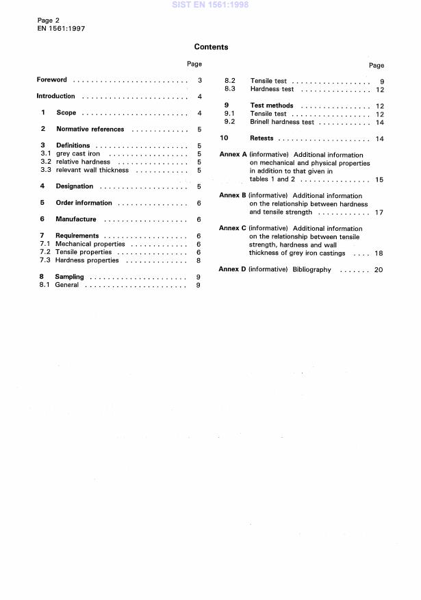 EN 1561:1997 is a standard published by the European Committee for Standardization (CEN). Its full title is "Founding - Grey cast irons". This standard covers: This European Standard specifies the properties of unalloyed and low-alloyed grey cast iron used for castings, which have been manufactured in sand moulds or in moulds with comparable thermal behaviour.