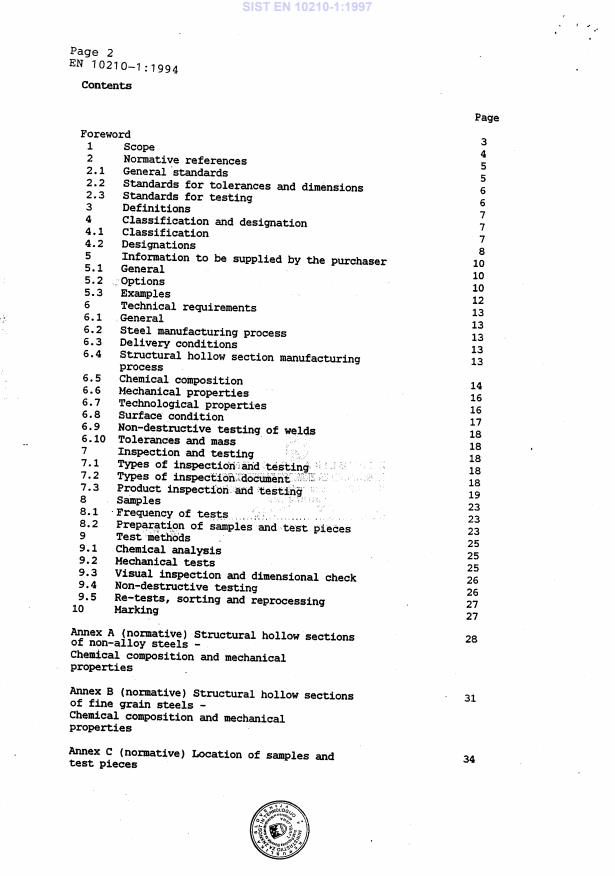 EN 10210-1:1994 is a standard published by the European Committee for Standardization (CEN). Its full title is "Hot finished structural hollow sections of non-alloy and fine grain structural steels - Part 1: Technical delivery requirements". This standard covers: This European Standard covers hot finished structural hollow sections in thicknesses up to and including 65 mm of circular, square or rectangular form and applies to hollow sections formed hot with or without subsequent heat treatment or formed cold with subsequent heat treatment to obtain equivalent metallurgical conditions to those obtained in the hot formed product.