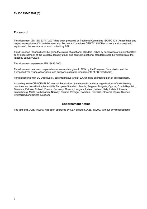 This document (EN ISO 23747:2007) has been prepared by Technical Committee ISO/TC 121 "Anaesthetic and