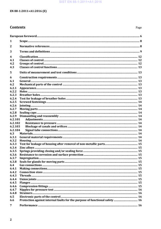 EN 88-1:2011+A1:2016 is a standard published by the European Committee for Standardization (CEN). Its full title is "Pressure regulators and associated safety devices for gas appliances - Part 1: Pressure regulators for inlet pressures up to and including 50 kPa". This standard covers: This European Standard specifies the safety, construction and performance requirements for pressure regulators and pneumatic gas/air ratio pressure regulators (zero pressure regulators are included as a special type of pneumatic gas/air ratio pressure regulator), intended for use with gas burners, gas appliances and similar use, hereafter referred to as ‘pressure regulators’. This European Standard is applicable to - pressure regulators with declared maximum inlet pressures up to and including 50 kPa (500 mbar) of nominal connection sizes up to and including DN 250 for use with one or more fuel gases in accordance with EN 437, - pressure regulators which use auxiliary energy, - pneumatic gas/air ratio pressure regulators, which function by controlling a gas outlet pressure in response to an air signal pressure, air signal differential pressure, and/or to a furnace pressure signal (zero pressure regulators are included as a special type of pneumatic gas/air ratio pressure regulator), - gas/air ratio pressure regulators which change an air outlet pressure in response to a gas signal pressure or a gas signal differential pressure. This European Standard does not cover - pressure regulators connected directly to gas distribution network or to a container that maintains a standard distribution pressure, - pressure regulators intended for gas appliances to be installed in the open air and exposed to the environment, - mechanically linked gas/air ratio controls, - electronic gas/air ratio controls (EN 12067-2).