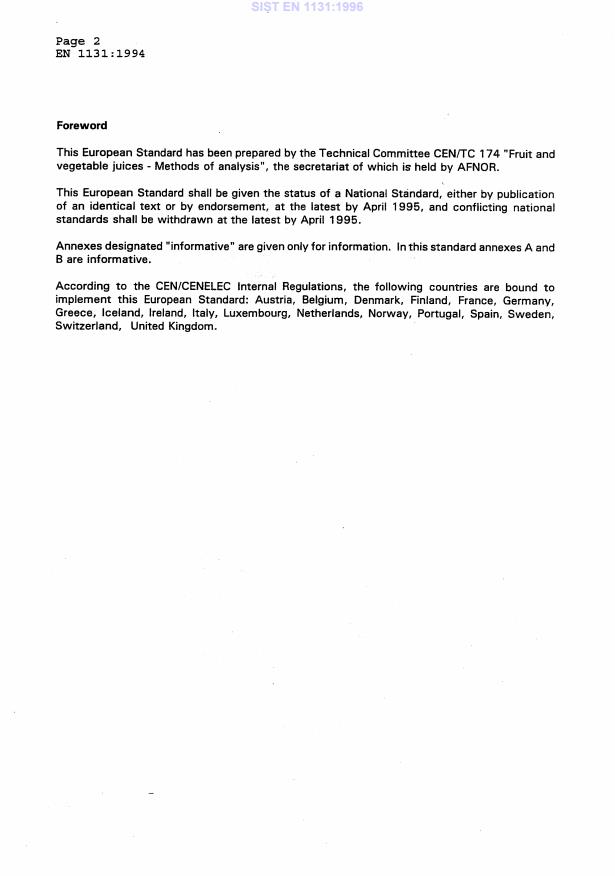 - CEN/TC 174 - Fruit and vegetable juices - Methods of analysis