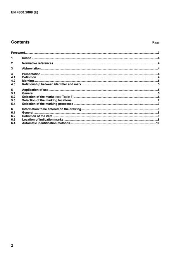 EN 4300:2008 is a standard published by the European Committee for Standardization (CEN). Its full title is "Aerospace series - Identification marking of engine items - Design standard". This standard covers: This standard: - describes the location and the layout of the marks of the item; - describes the marking processes to be used according to the environment and the function of the items; - determines the selection conditions of the marks; - determines the compatibility conditions of the marking processes with the constitution, the production and the use of the items. This document applies to aerospace engine items and shall be used in conjunction with EN 4301.
