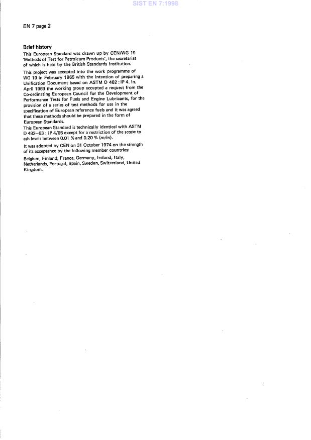 EN 7:1974 is a standard published by the European Committee for Standardization (CEN). Its full title is "Determination of ash from petroleum products". This standard covers: Determination of ash from petroleum products