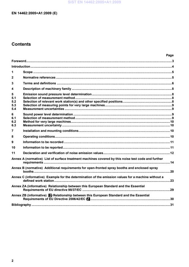 !!!!Relationship between this European Standard and the Essential Requirements of EU Directive 2006/42/EC"""" . 30Bibliography . 31 SIST EN 14462:2005+A1:2009